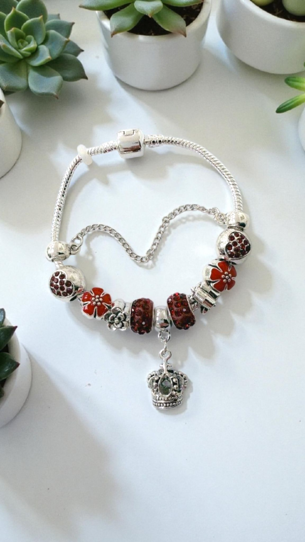 Pulsera estilo "Pandora" con diferentes tipos de charms.