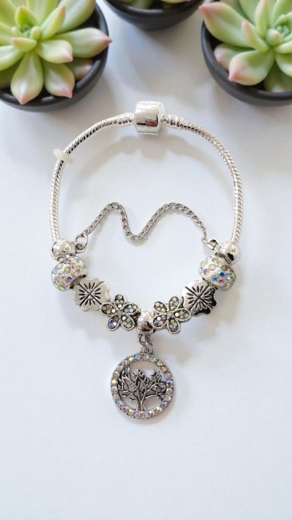 Pulsera estilo "Pandora" con diferentes tipos de charms.