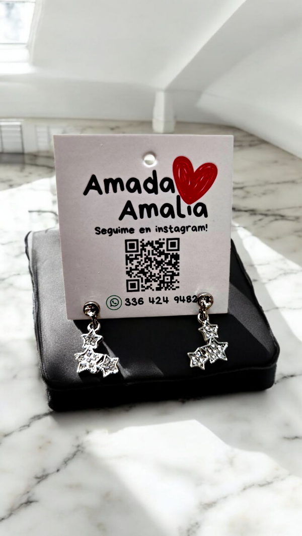 Aros de acero blanco pasantes, con zircon y estrellas colgantes.