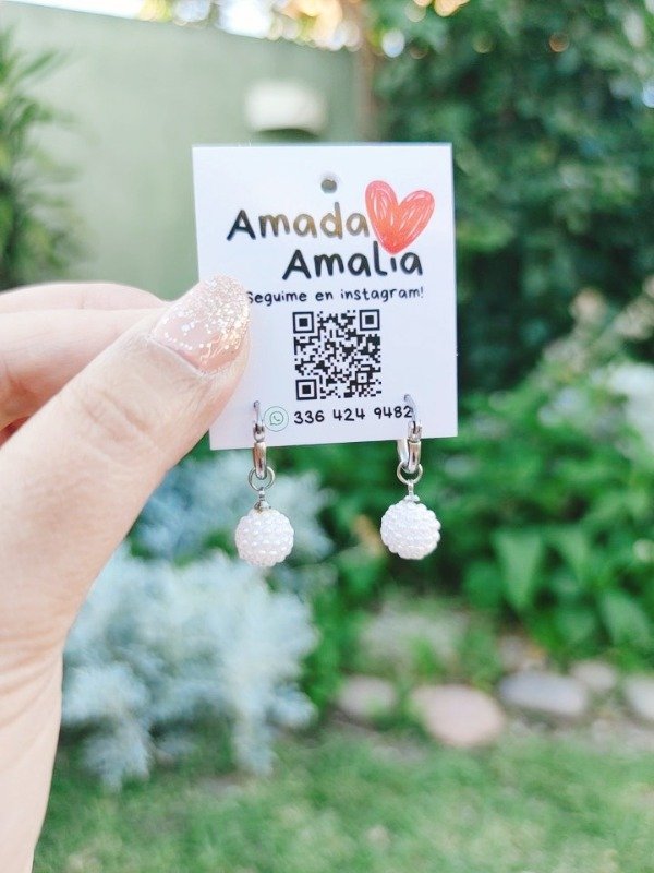 Aros tipo argollas con dijes de perlas de mini burbujitas.