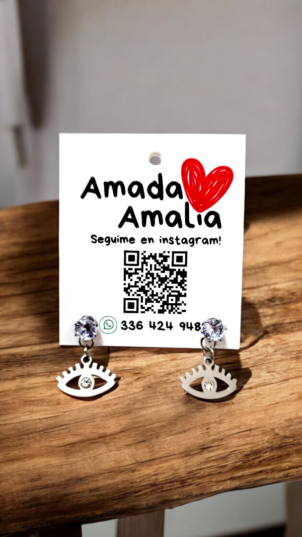 Aros de acero quirurgico tipo argollitas, con ojo turco colgante con zircon en el centro.