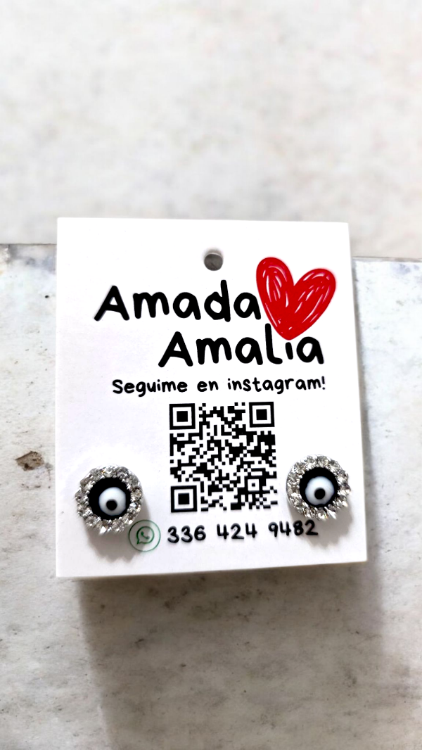 Aros de acero quirurgico pasantes de ojo turco con zircones alrededor.
