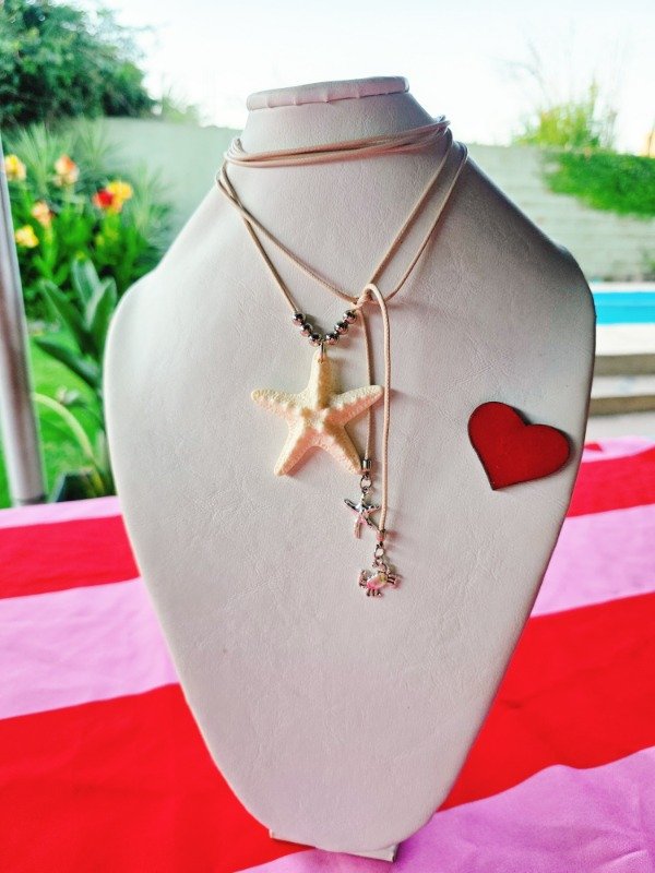 Choker hecho en hilo engomado color natural, con dije de estrella de mar XXL de resina.