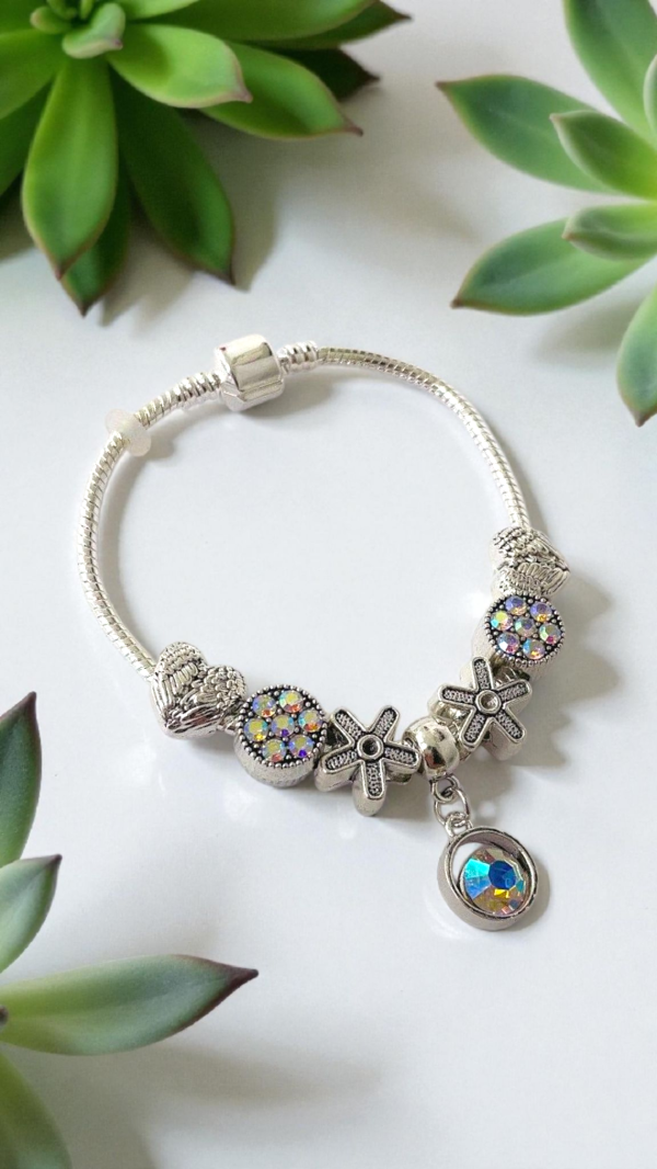 Pulsera estilo "Pandora" con diferentes tipos de charms.