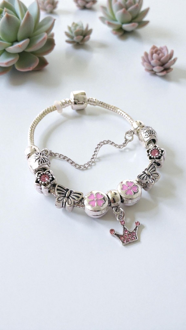 Pulsera estilo "Pandora" con diferentes tipos de charms.
