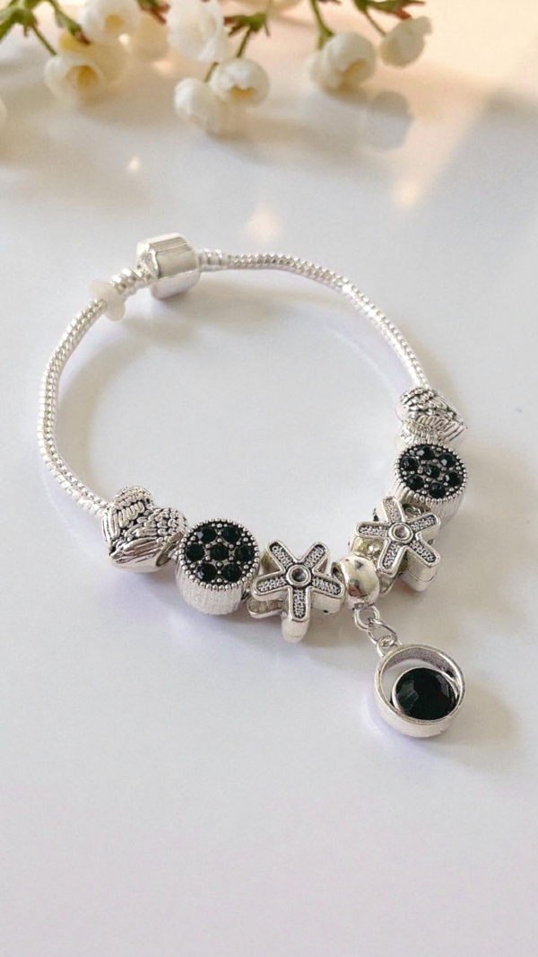Pulsera estilo "Pandora" con diferentes tipos de charms.
