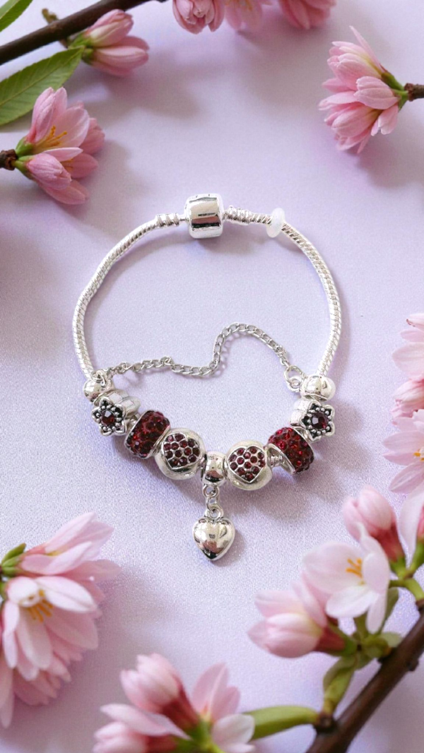 Pulsera estilo "Pandora" con diferentes tipos de charms.