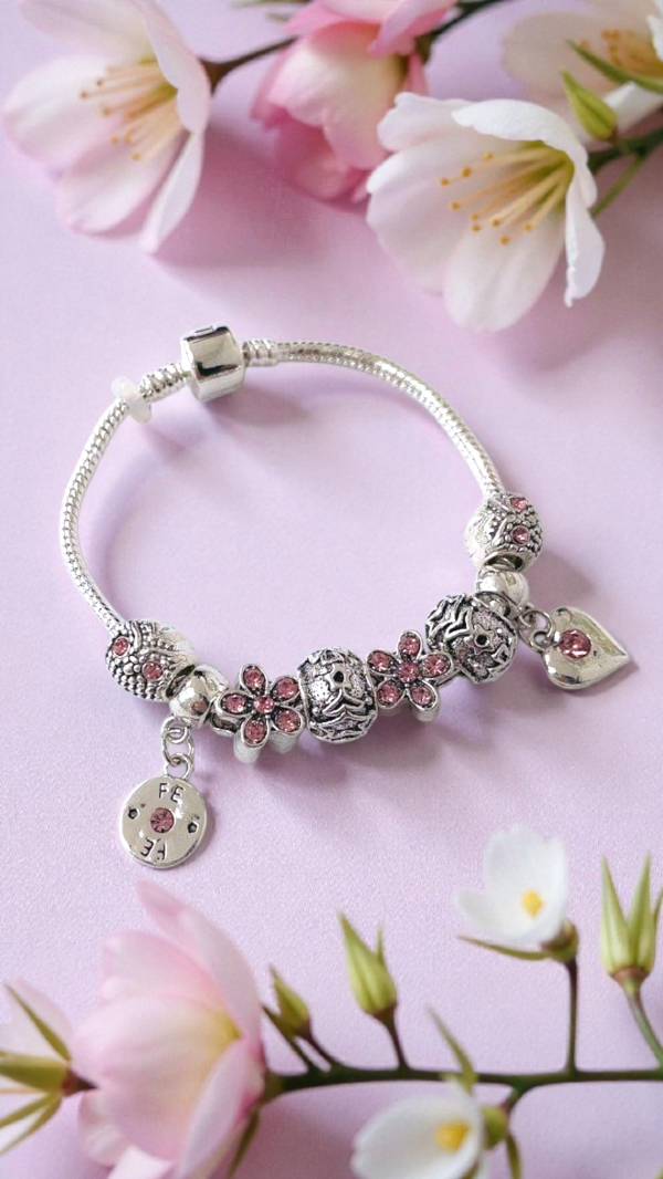 Pulsera estilo "Pandora" con diferentes tipos de charms.