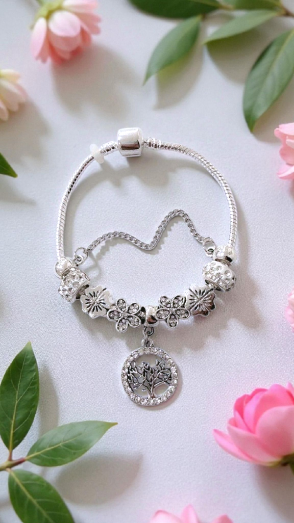 Pulsera estilo "Pandora" con diferentes tipos de charms.
